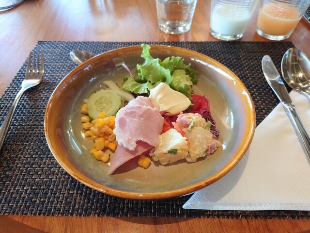 4泊したので、4回目の朝ごはん。なんとなく、ずっと同じような朝ごはん食べてるような気が。。。パンは、いろいろ揃っていますが、甘い系がたくさん。最後に洋食な朝ごはんもイイかも。