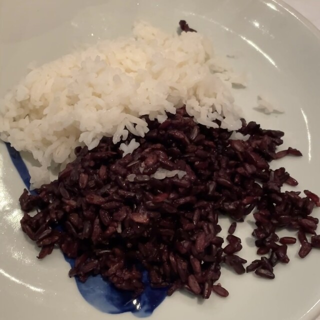店員さんが赤米とタイ米を皿に盛ってくれます。