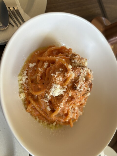 マルゲリータピザ、カマトリチャーナ(カルボナーラとアマトリチャーナが合わさったようなもの)パスタ、ペペロンチーノのようなパスタをオーダーしました。