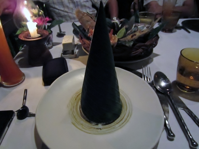 ご飯は三角になったバナナの葉っぱに覆われてでてきました。