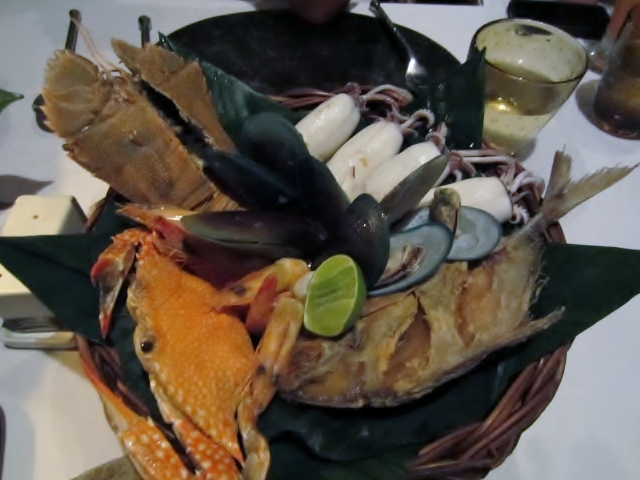 魚貝の盛り合わせ、プーケットで獲れた様々魚貝が山盛に積まれて出て来ました。