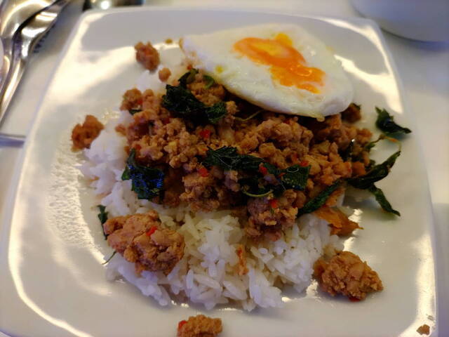 「プーケット国際空港 (HKT)」に到着し、出国手続きのあと、ロイヤルオーキッドラウンジに入りました。グリーンカレーをいただきましたが、サラダが小さなカップ入りだったり、ワインがとても安いものだったり...