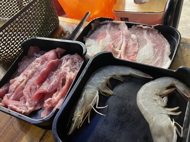 具材は、牛豚鶏の他、シーフードもあります。