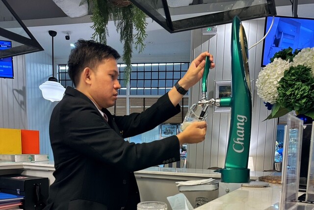 国内線搭乗口8番の近くにあるCoral Beach Loungeにて、Changのドラフトビールとウォッカトニックでアルコールチャージ。受付兼バーカウンターで、スタッフがきちんとアルコールを作ってくれ...