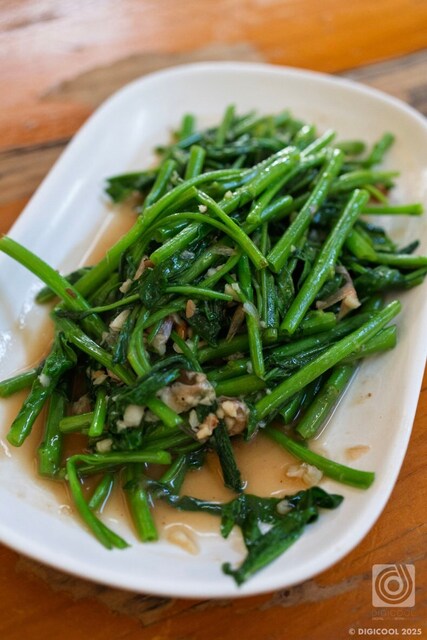 奥さんの大好きな「ผักบุ้งไฟแดง(パック・ブーン・ファイデーン/空芯菜の炒め物)もシャキシャキと美味い。ここのは結構辛かったなぁ。唐辛子多め。