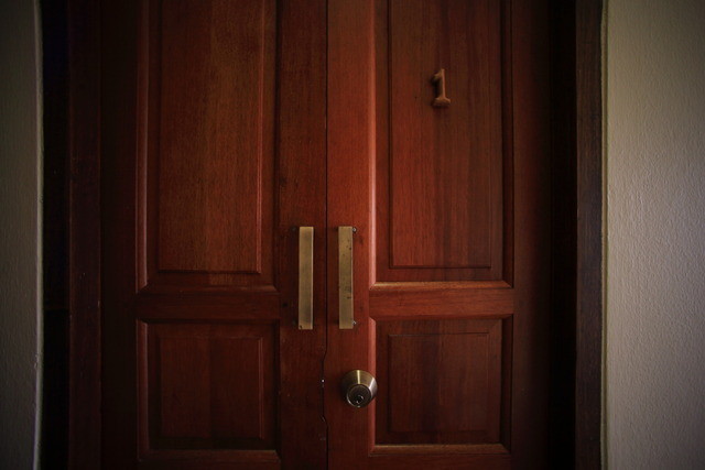 趣き溢れる木の扉、鍵は内側は二重ロックとなっています。