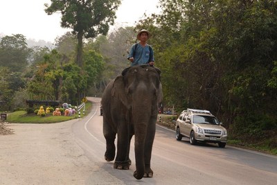 山岳民族の人々の村から国境ゲートへ向かい車を走らせていると~普通に象が道路を歩き、仕事から戻って来ます