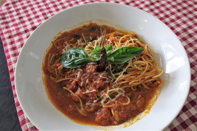 細いパスタに、トマトソースがたっぷり。
