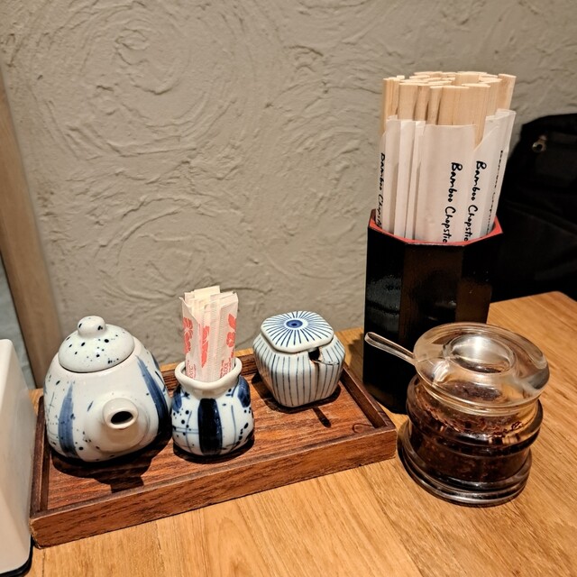 醤油、爪楊枝、七味、割り箸、辛~い調味料