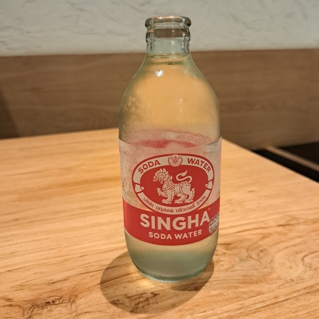 日本の飲食店の様に「お冷や」は無く、水は買わないといけないので、ビール代わり?に「SINGHA炭酸水」を注文しました。