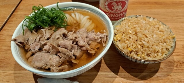 ガーリックライスは、お米がタイ米で、あの長細い米粒ですが、ガーリックの風味が強すぎず、程良い感じです。お米もパラッとした焼き飯風で、うどんのお供にイイご飯でした。