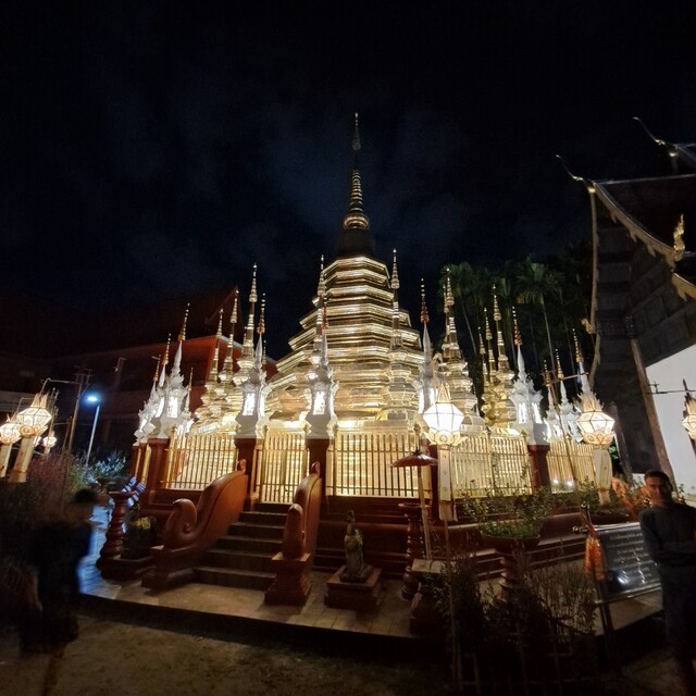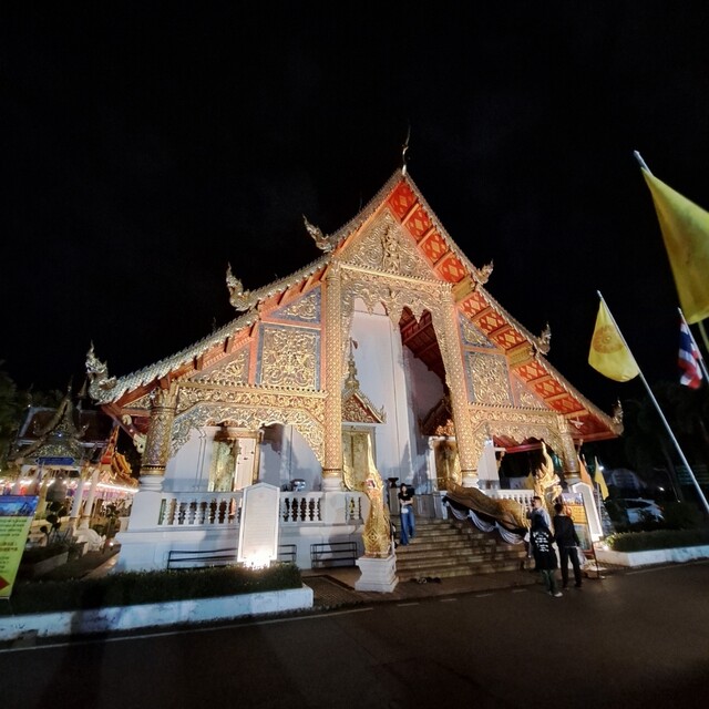 ライトアップされたワット・プラシン本堂