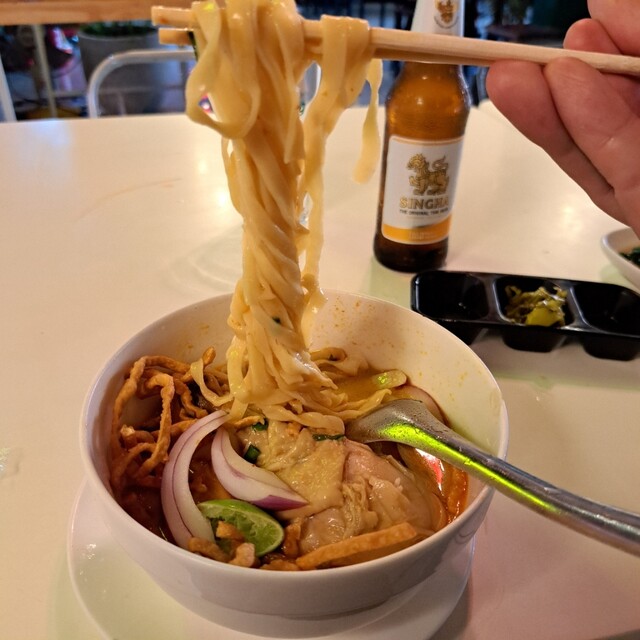 「Tum Yum Changphuak」さんに来たら「カオソーイ(チキン)」「チキンウィズフライドエッグパッカラオ」…オススメです。