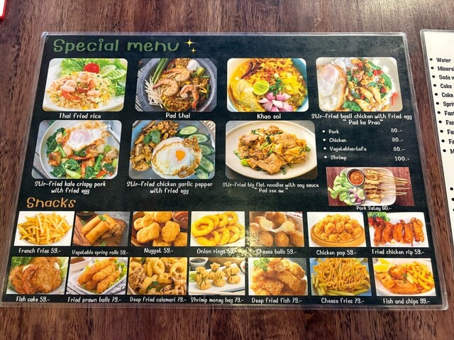 オーダーはカオソーイチキンとビアシンのあてに豚のグリル。