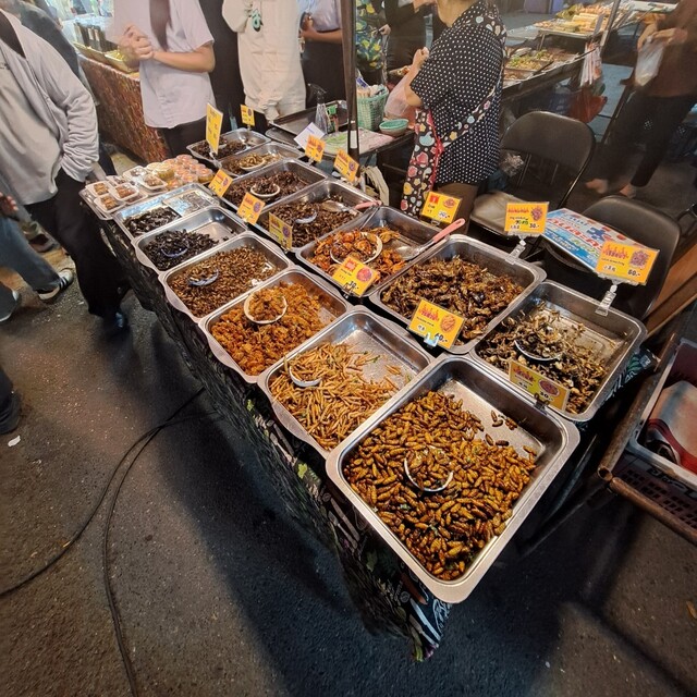 中華街のナイトマーケットの屋台で売られていた虫料理( ゚Д゚)