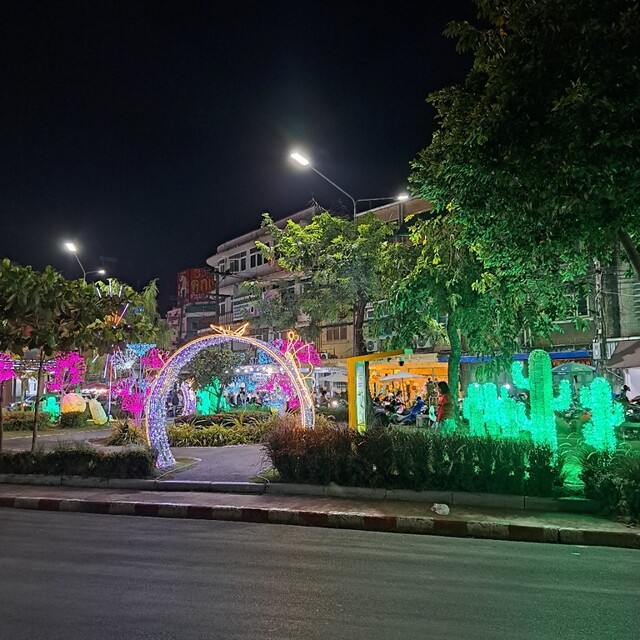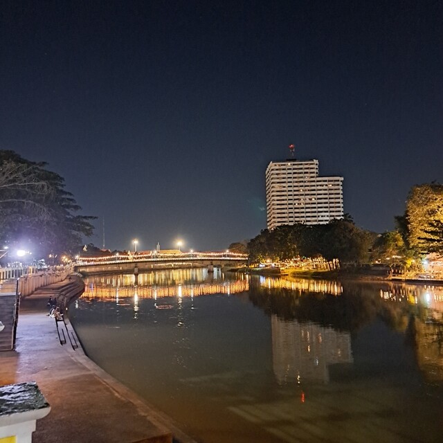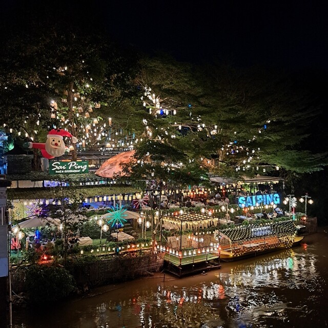 その後も「ワンニマンショッピングビル」や「ナイトマーケット」「チャイナタウン」を散策。「ピン川」では夜景を観賞…。この後、晩御飯を食べに行く事にしましたが、時間も遅かった為、宿泊ホテルの近くで何処かイイお店があったら、そこに入ろうと言う事になり、ホテル近くまで帰ってきました。