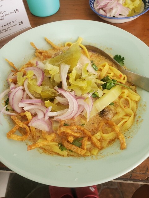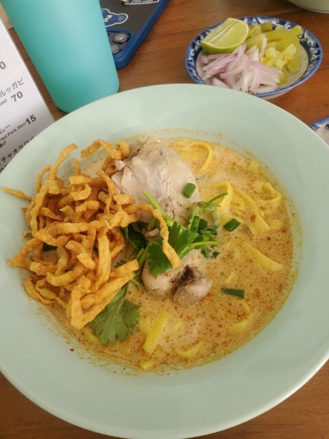 すでに旨そうなグリーンカレースープに刻みタマネギと菜を入れライムを絞っていただきました!