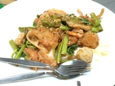 酢豚のような味付けの魚のフライの炒め煮(パットプリオワーン・プラ)、名物のパットセンヤイ。