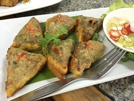 豚ひき肉のカナッペフライ(THB70.00)は二人でシェア。