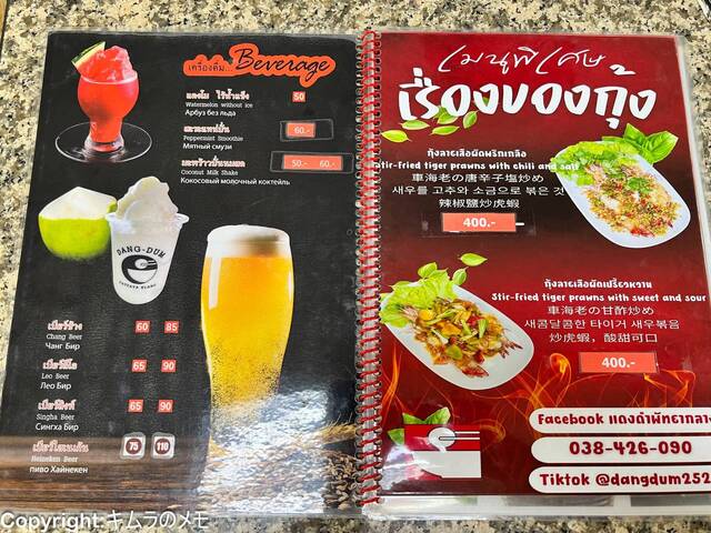 メニューは基本的に英語とタイ語のみでの表記だが、一部のメニューは日本語表記もある。