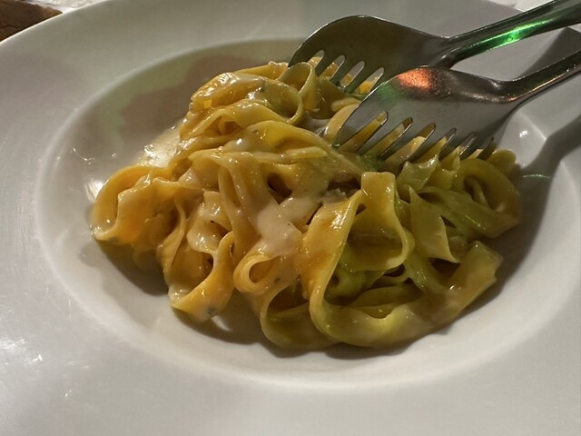 どこ行ってもカルボナーラ頼むが、過去一美味かった。麺を選ぶのでフェットチーネにしたが、これまたよし。