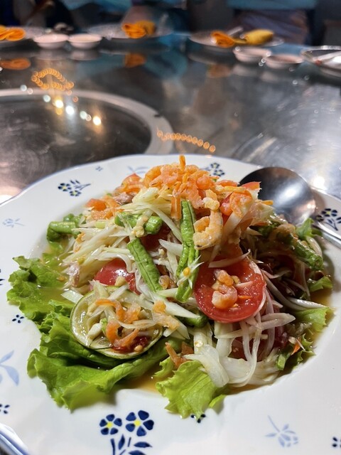 タイ旅行で利用。パタヤの海沿いで、サンセットを眺めながらゆったりとテラスで食事できます。エビやカニの海鮮のほか、タイフードもあります。山にPATAYYAと大きな文字があるところが正面に見えて、夜はライ...