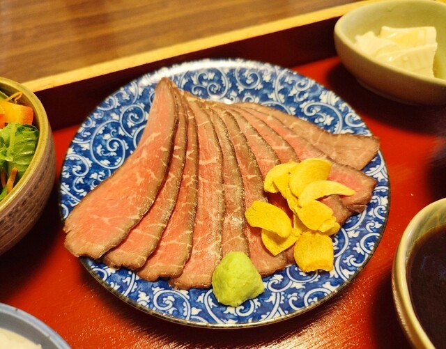 一般的な居酒屋的メニューの他、和牛を取り扱っていてローストビーフが看板メニュー。