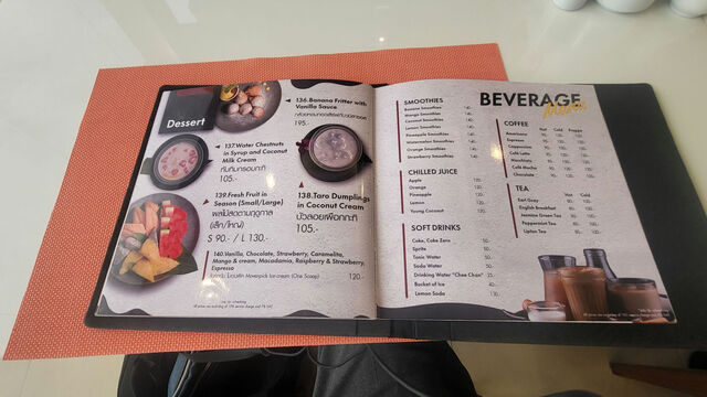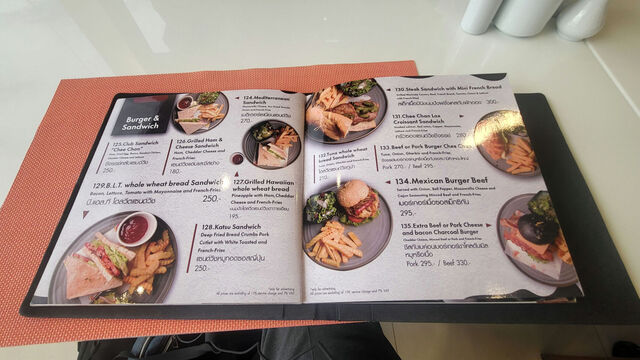 Beef Burger Ches Chan 295THB, Lemon Smoothies 140THB (VAT, サ料別)