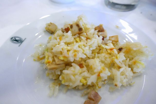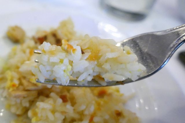ソーセージ&ハム入り炒飯は山盛り状態で置かれており