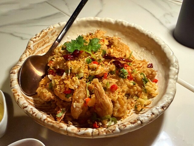 オーダーはすべてお任せ。ビールはヒューガルデンのポータブルサーバーから注がれており、少し意外で面白い。次々と運ばれてくる料理をつまみながら、アユタヤの歴史などを教えていただく。