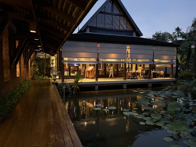 「アナンタラ」内のレストラン。ハスの池が幻想的でした。