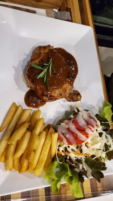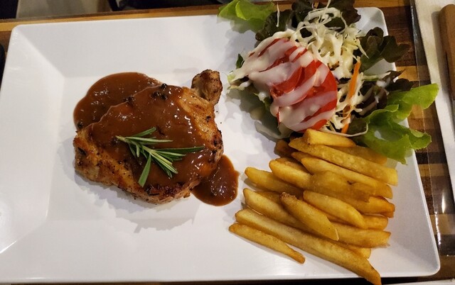 ポークステーキは肉厚で食べ応え満点!スパゲッティもそれなりに美味しかったです。スタッフさんの接客、雰囲気も良いので、マッタリと寛いで頂きました(〃´ω`〃)