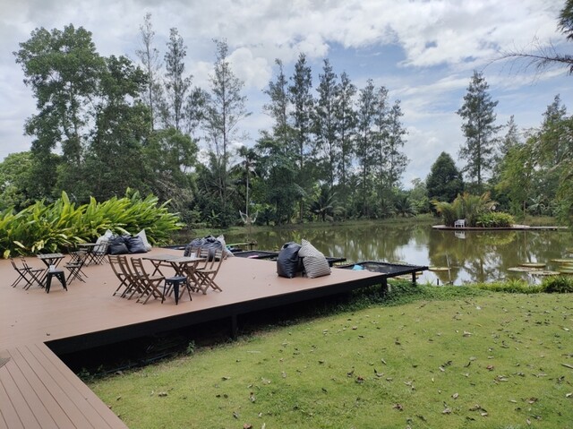 半分以上は屋外なのだが、キャンプ見たいな作りから、池を眺められるところから。