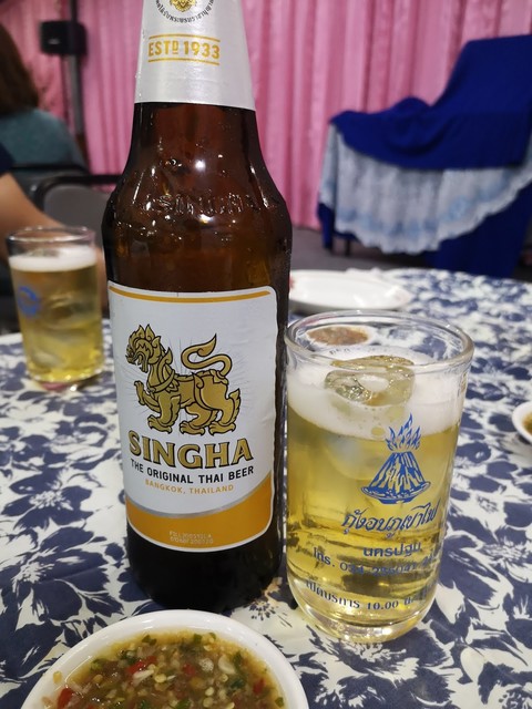 極楽気分でまずはシンハービール。お姉さんはシンハービールを運んで来ると、グラスに氷を入れ始めます。