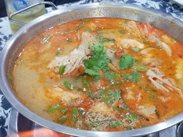 最初にトムヤムクンがアルコールランプで温められながら出てきます。