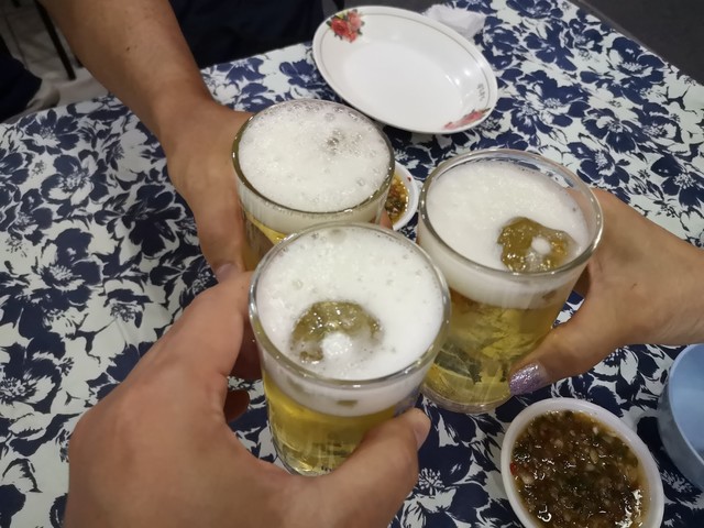 「こっちでは、割と多い飲み方だよ。気温が高いから、冷たいビールでもすぐにぬるくなるからね」