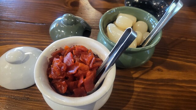 福神漬けとラッキョウがテーブルに有り味は日本と同じ。