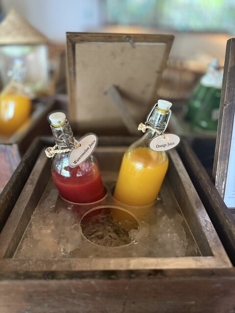 大きなテラスで開放的な雰囲気の中、ビュッフェスタイルの朝食。
