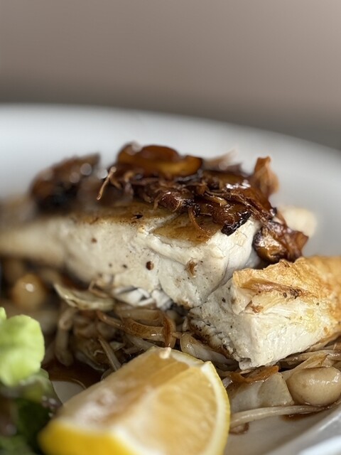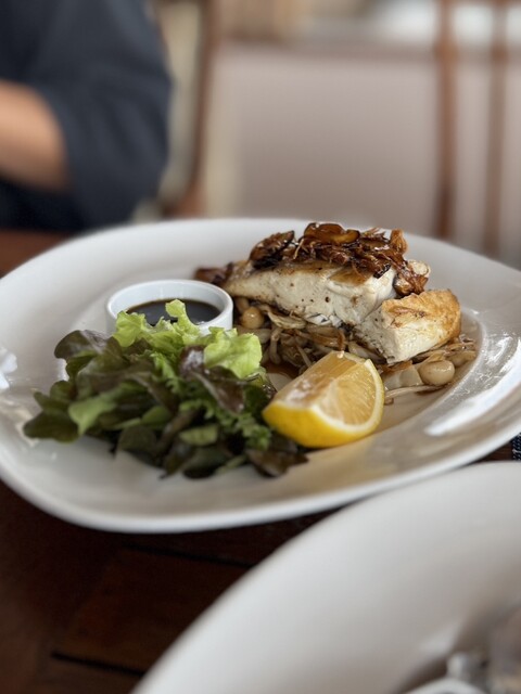 鮮魚のグリル。身が大胆にカットされており十分な食べごたえ。白魚にスパイスの効いたソース。この組み合わせ。