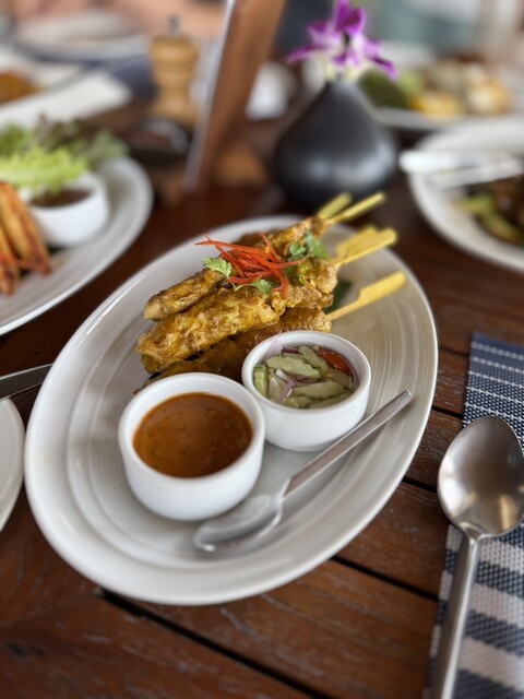◆Grilled Marinated Chicken Satay Served with peanut sauce & Pickled cucumber