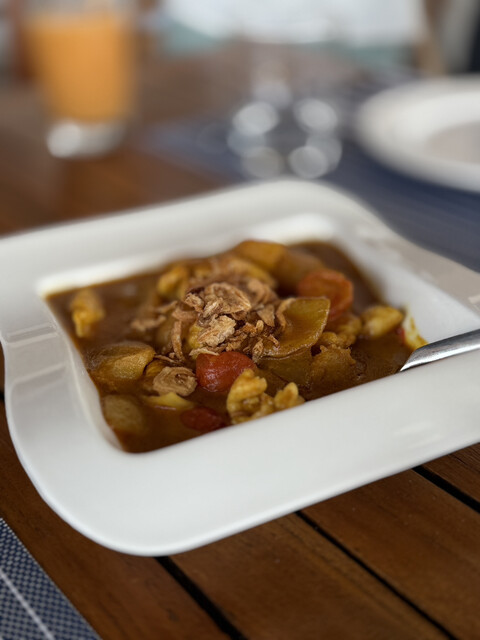 • THE BANYAN TREE POOLSIDE CAFE - Yellow Curry with Chicken Potato, onion, cherry tomato