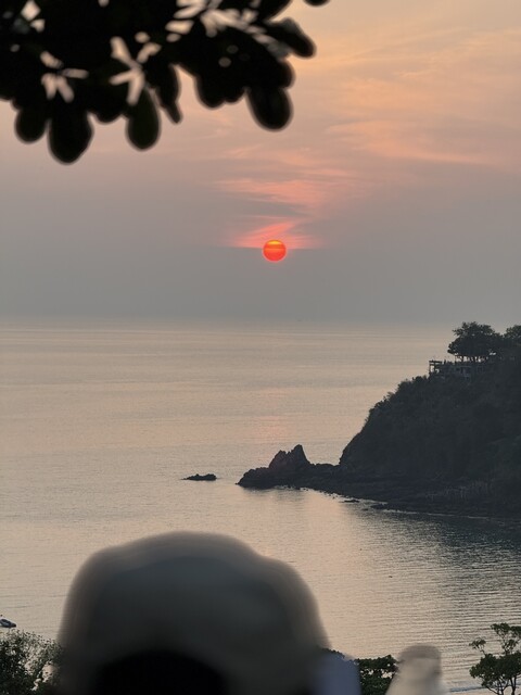 シンハービールでまずはスタート。太陽が徐々にオレンジから赤に。