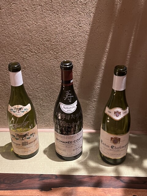 手に取ると、えっ、えええええっ、ピュリニィ・モンラッシの2007年にコルトン・シャルルマーニュ・グランクリュの2000年。極めつけはDRCはロマコンの2002年・・・。