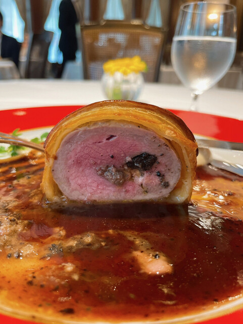 メインはマリアカラス。仔羊の真ん中にトリュフ、フォアグラ、マッシュルームのペーストが入ってます。