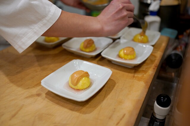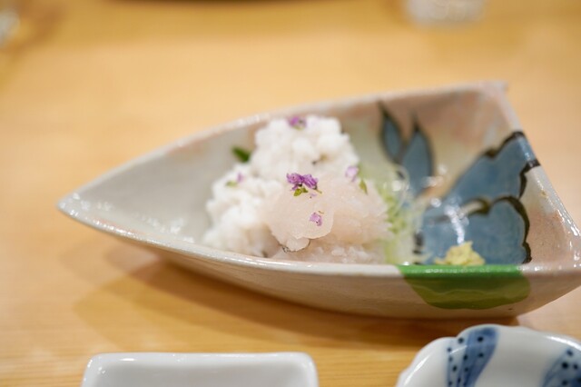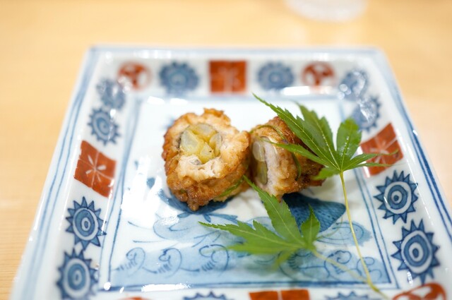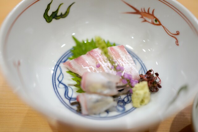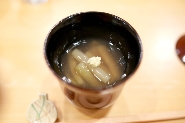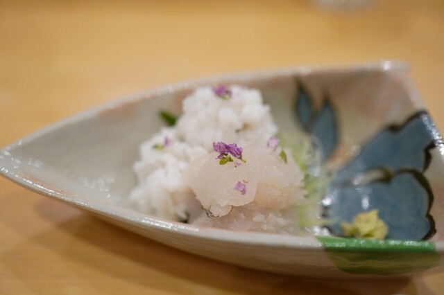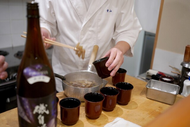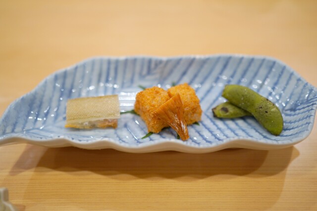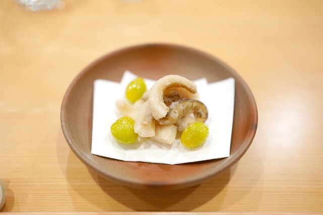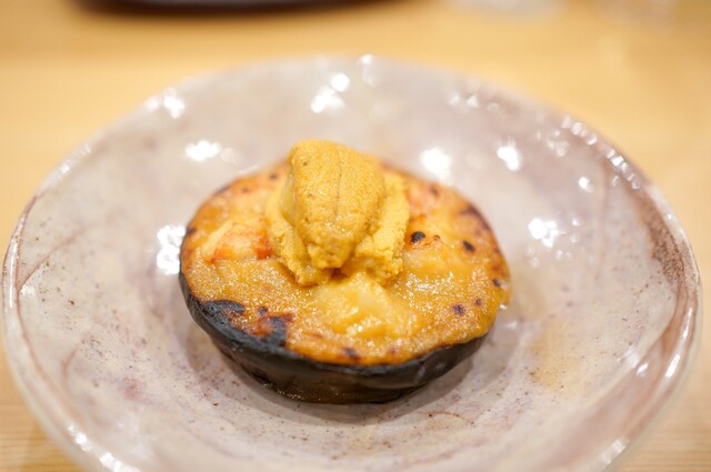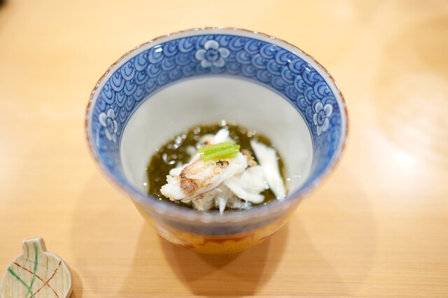 前回伺ってからお料理はもちろんお2人の人柄含め通いたいと思う貴山さんへ。 ・海鼠腸の飯蒸し ・八寸 ┗カマス炙り ┗銀杏 ┗百合根蒸し ┗バチコ ┗鮑 ・雲丹茄子田楽 ・津居山のズワイ蟹 ・海老芋の唐揚げ ・鯛、失念、、 ・若狭グジと松茸のお椀 ・真魚鰹の味噌... 詳細を見る