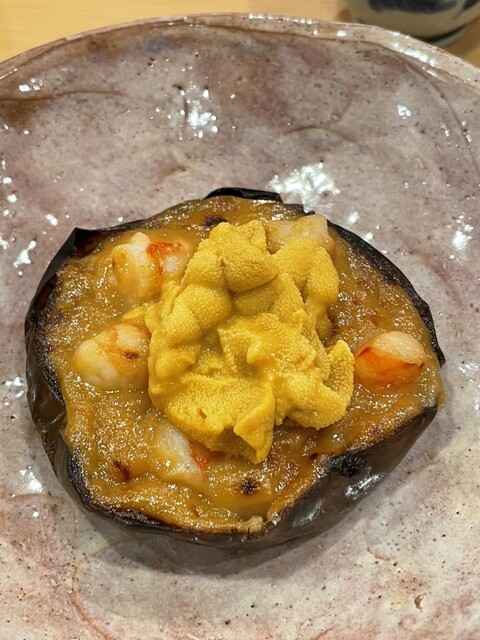喜ばせ乍ら妙味を作り出し絶品なる海胆茄子が