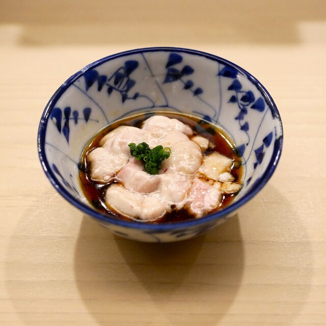 都内の鮨屋の中でも特に予約難度が高いことで知られる「日本橋蛎殻町 すぎた」。2017年のミシュラン東京では、初の一つ星を獲得した。鮨やつまみの秀逸さだけでなく、杉田孝明氏の物柔らかな人柄や細かやな気遣いのある接客も訪れた人々を魅了し続けている。つけ場に立つ杉田氏は、明治20年創業の老舗「日本橋蛎殻町 都寿司」にて修業。軽めの漬けで出す大間のマグロ、酢締めにする天草のコハダなど、魚は毎日通う築地で上...質な産地から選ぶ。また、赤酢や煮きり醤油を使うなど、伝統の江戸前を継承するための創意工夫も忘れない。品書きは、つまみと握りで構成された「おまかせコース」一本のみ。絶妙な口ほどけが心地良い一貫に酔いしれ、無駄のない流麗な握りの所作に心を奪われるはずだ。