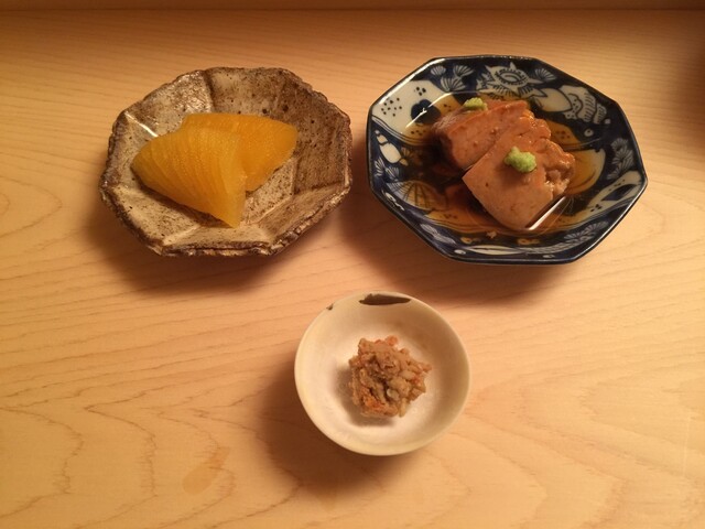 まずは、つまみを6品ほどいただき、その後に握りを12品ほど。