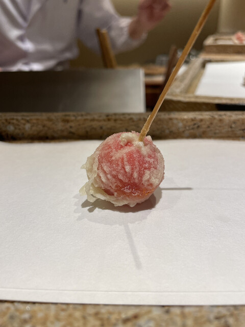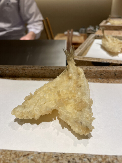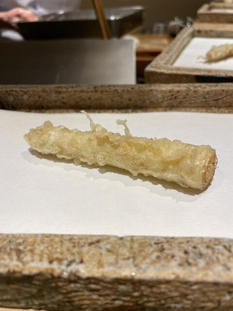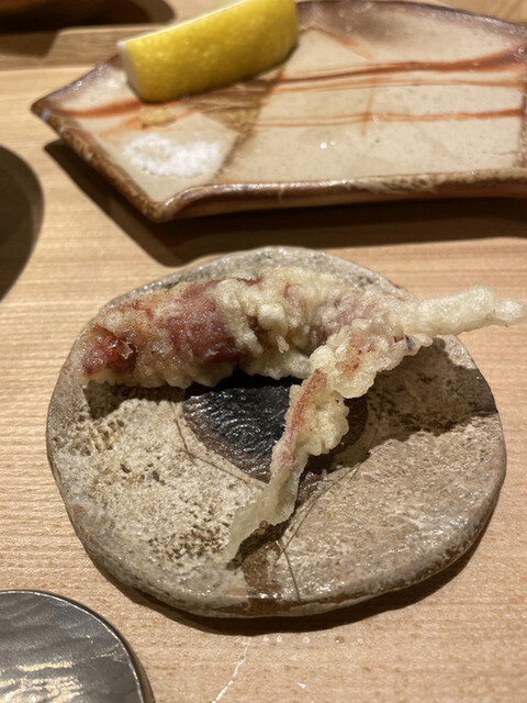 この日は、前回はなかった鮪(まぐろ)の天ぷらをいただくことができ、特に芋が甘味と新鮮な食感で最高に美味しかったです。また、おそらく初めていただいた小肌の天ぷらは、本来の江戸前天ぷらの技を感じさせる、相性抜群の一品でした。