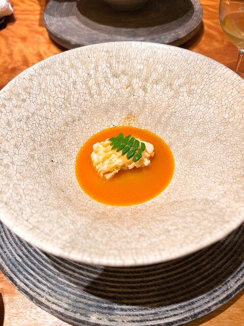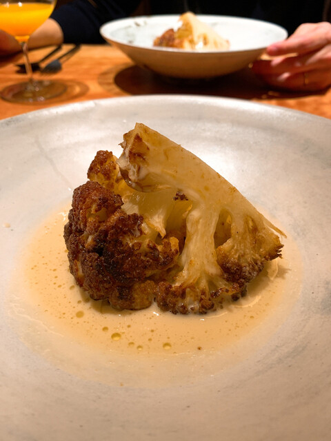 ・カリフラワーのスープは、香ばしさと泡の軽さの対比が見事で、秋の空気を感じさせる一皿。